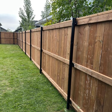 Craft a durable, modern fence that combines the natural beauty of wood with the strength of metal posts—built to last and elevate your property.